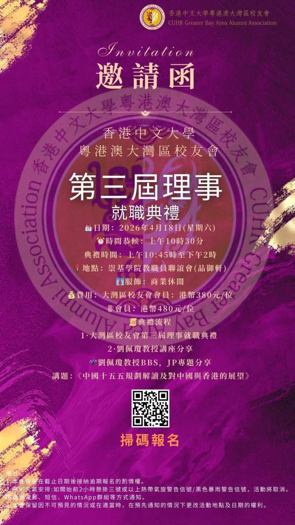誠邀各位校友蒞臨,見證新一屆理事就職的重要時刻。